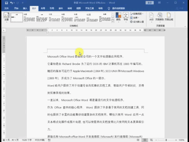 点击菜单栏中的“设计”选项卡,然后点击下方“页面背景”组中的“水印”选项,从下拉列表中选择“删除水印”。