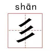 但读作“shān”,意思是用羽毛装饰。事实上,我们可以看到这个词看起来像一只孔雀后面长着一条大尾巴的美丽羽毛。