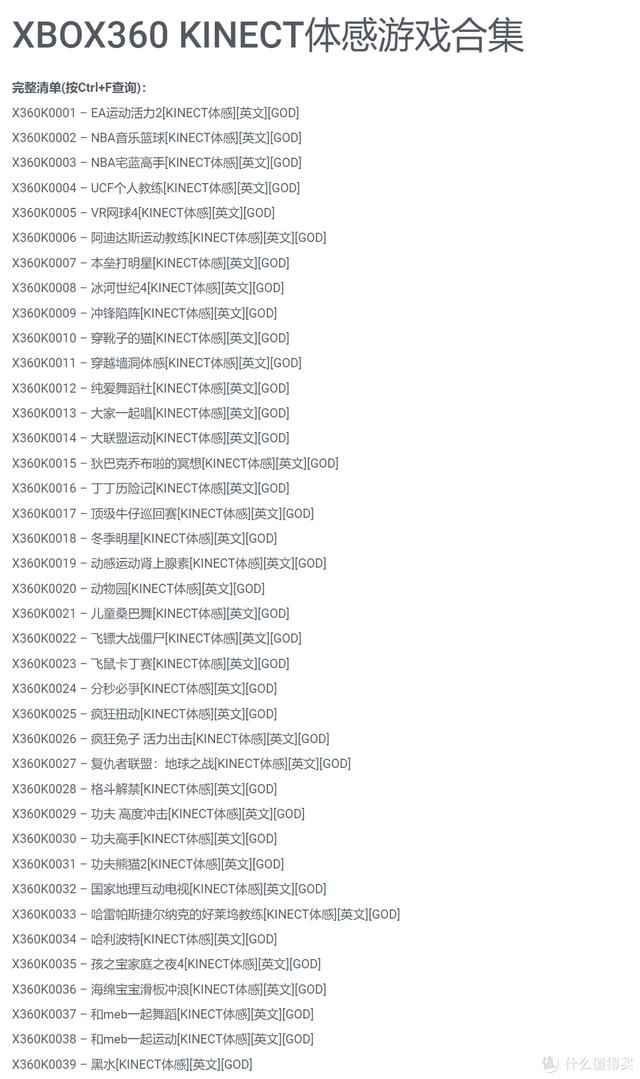 XBOX360 KINECT支持的英文体感游戏(仅部分约109款):