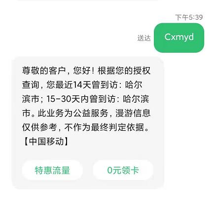 手机发送“CXMYD#身份证后四位”至10010,查询全国近30天漫游地信息,方便返工和辅助调查。