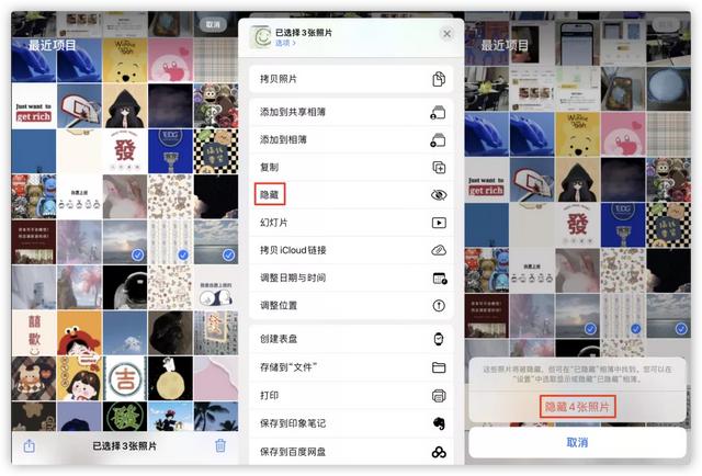 如果你的相册里有一些私人照片,那么“隐藏”功能就可以派上用场了。