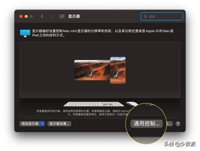 你还可以在Mac电脑上找到一些与通用控制相关的高级设置,包括“移动到屏幕边缘自动连接”和“自动重新连接已知的Mac和iPad”。这些设置可以在“显示”偏好设置右下角的“通用控制…”按钮中找到。