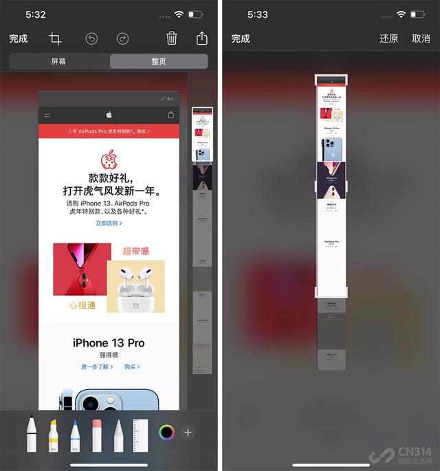 众所周知,iPhone不支持长截图,但确实支持浏览器长截图。在自带的浏览器中截图后,打开截图界面,选择“整页”,点击裁剪按钮,对页面进行选择性裁剪,最后点击完成,实现长截图。