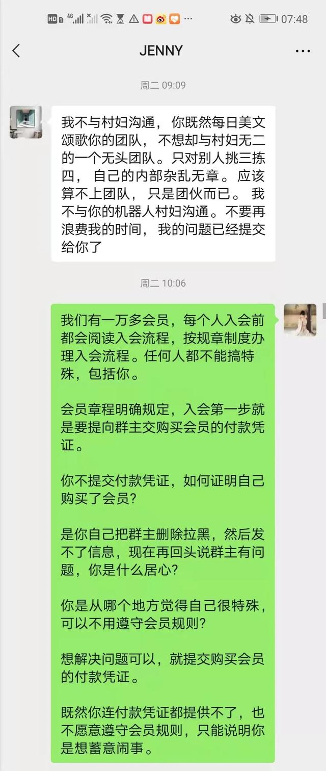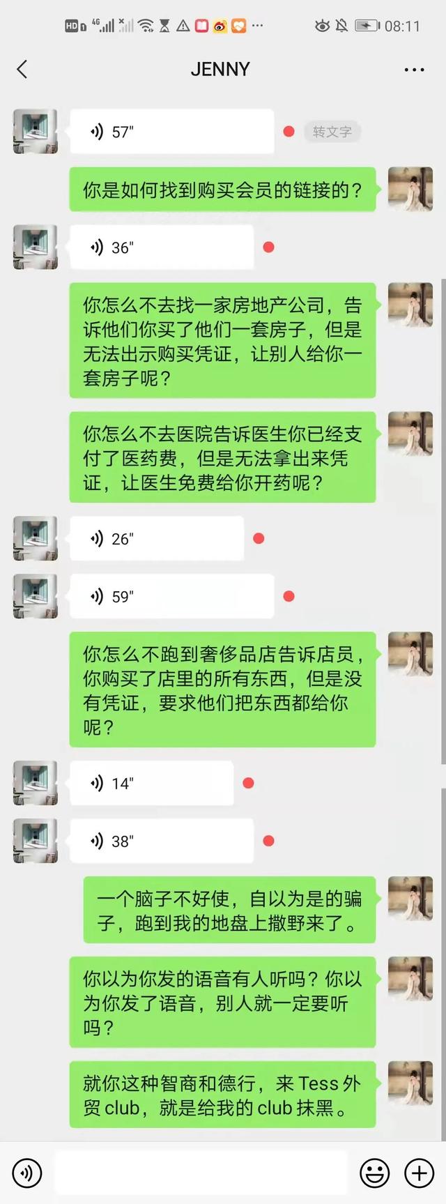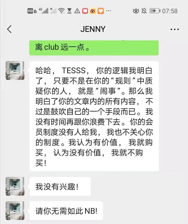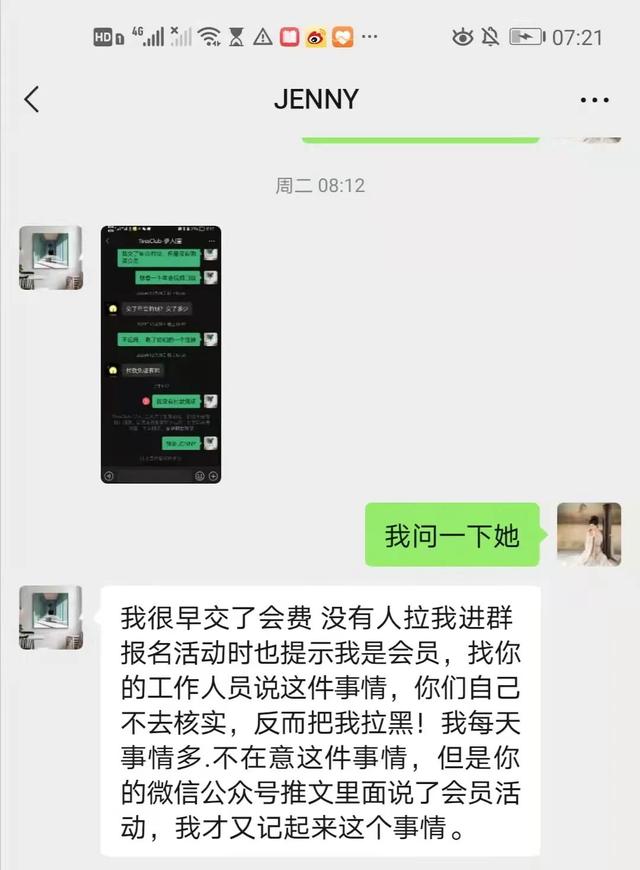 我在尝试用另一种方式和她交流。也许有道理。如果人家真的交了,享受不到会员待遇,岂不是损失很大?一年200块的会费虽然不多,但也是钱。
