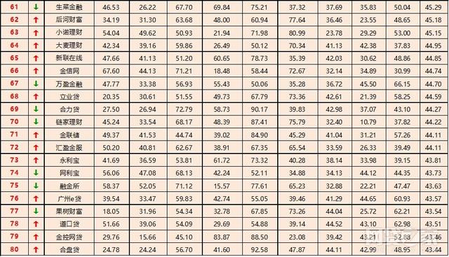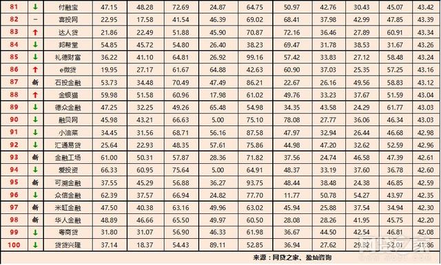 由于本月行业领先平台成交额增长近10%,且各平台在小规模产品分散上加大力度,导致网利宝本月排名下滑较大。