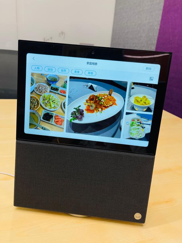 配合天猫精灵V10的10.1寸IPS大屏,也能做出非常漂亮的家庭相册,而且还是云相册。可以手机上传,也可以视频通话抓拍,远程推荐到天猫精灵V10的屏幕上。它还可以自动对照片进行分类,比如人物、食物、风景、宠物、运动、其他,这样我就可以更快更方便地找到我想给你看的照片。