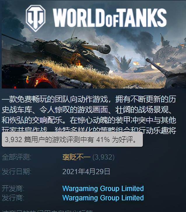 不过《坦克世界》虽然上了Steam,但是它有一个“换肤”服务器,仍然连接着原来的亚洲服务等。,不是新服务。另外游戏对新手要求很高,经常有人去低级房间屠杀年轻人,对新手也很不友好。Steam的好评率只有41%。