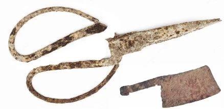 那把菜刀的刀刃真的锃亮,寒气逼人;剪刀也是连的。红剪刀用冷水冷却后,锋利如新。