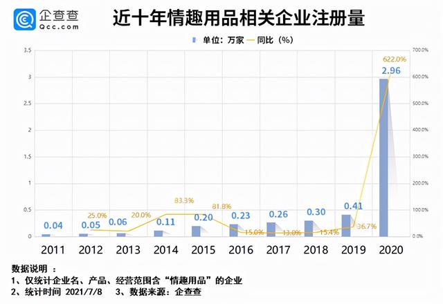 到2020年,在电商和疫情的协同作用下,情趣用品行业将呈现全方位爆发趋势,企业注册数量稳步上升,同比增长500%。