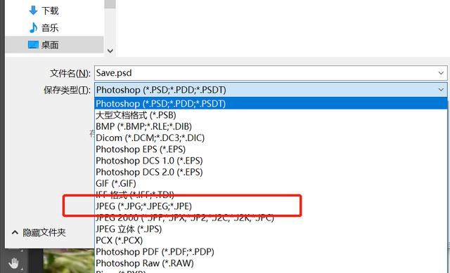 方法也很简单:在保存类型中选择JPEG,点击保存,就OK了。