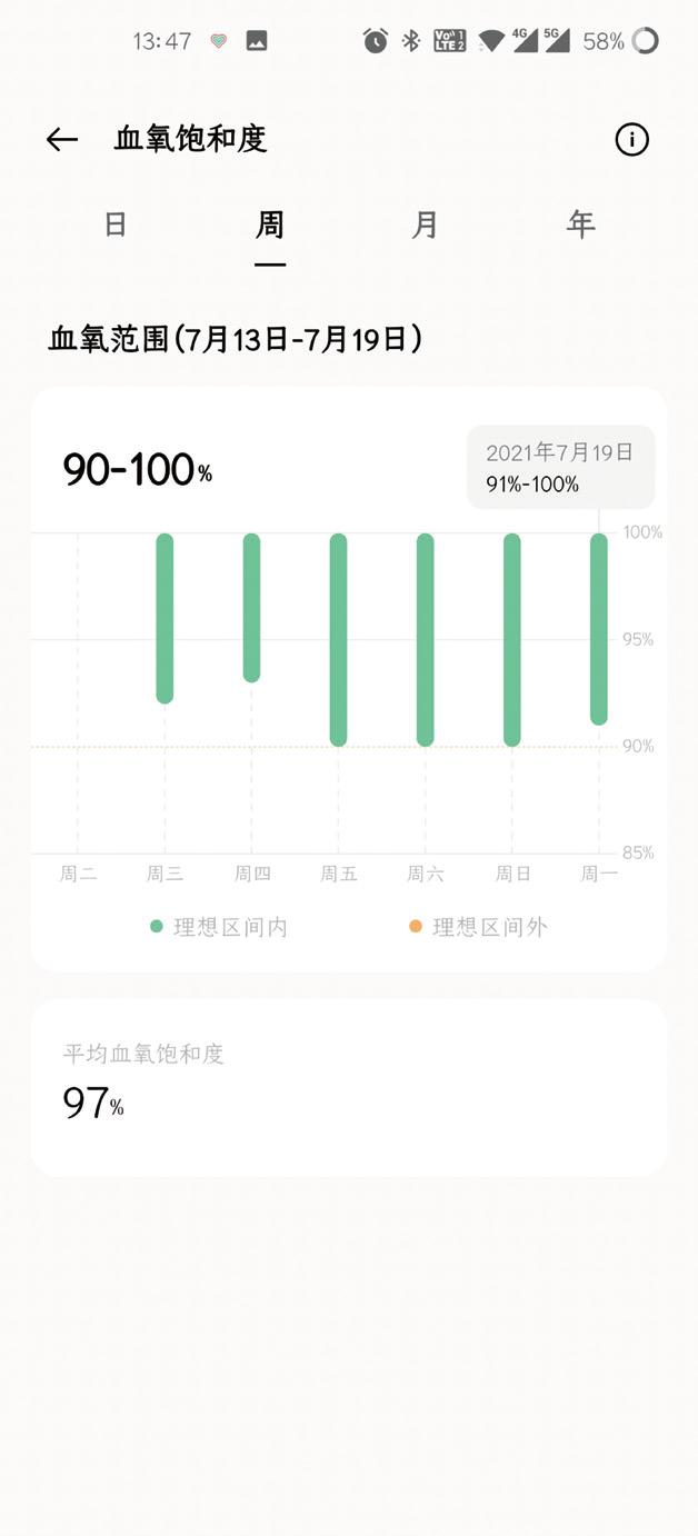 OPPO智能手环活力版内置电池容量为100mAh,正常使用下官方标称续航时间约为14天。我发现在关闭40%亮度、实时心率监测、持续血氧监测的设置下使用14天后还有3%的电量,说明它的耗电量并不高,半个月充一次电没问题。手环完全没电后,充满电只需要3小时左右。
