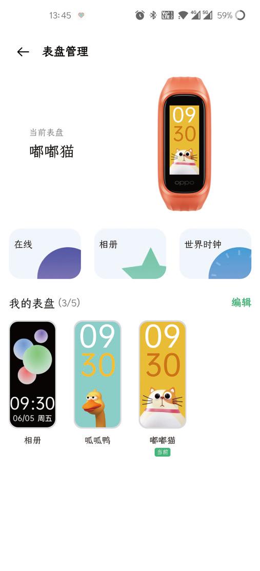 值得一提的是,有超过160种表盘样式与手镯的外观相匹配。OPPO智能手环活力版支持用户选择五种风格的表盘进行旋转,让你每天都有新鲜感。此外,它还支持相册中的照片作为表盘。
