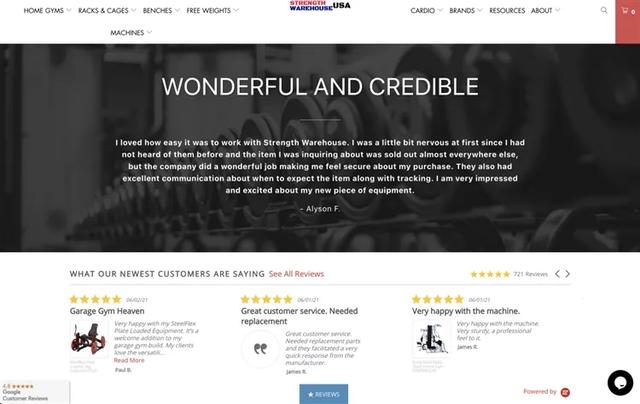 力量健身美国公司使用Yopto(评论插件工具)在网站和社交媒体渠道上收集和展示客户好评。“真实积极的客户评价可以让品牌更加引人注目。卓越的客户服务、真诚的帮助以及满足客户的需求和福祉是品牌成功不可或缺的要点。”
