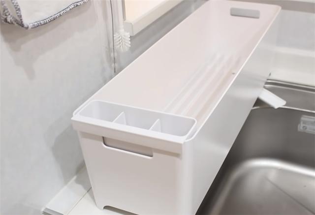 这款沥水储物盒还配有可拆卸的筷子勺篮,底部的导水槽可以左右切换。无论是放在水箱的左侧还是右侧,都非常合适,可以根据家里厨房的布局和使用习惯进行调整。这个小设计还是很人性化的!