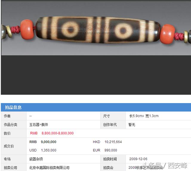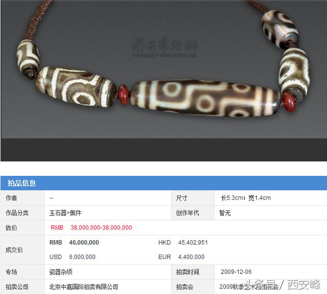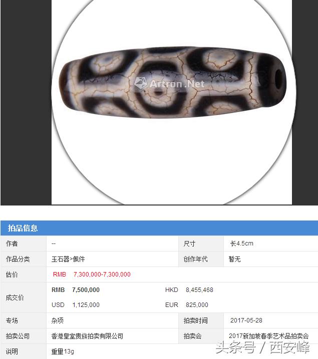 现在天珠价格天价,天珠拍卖价格更是天价。今天,边肖按照从高到低的顺序排列天珠。因为成交太多,所以只选择成交价500万人民币及以上的。所有图片和资料均来自雅昌艺术网,仅供网友娱乐参考。