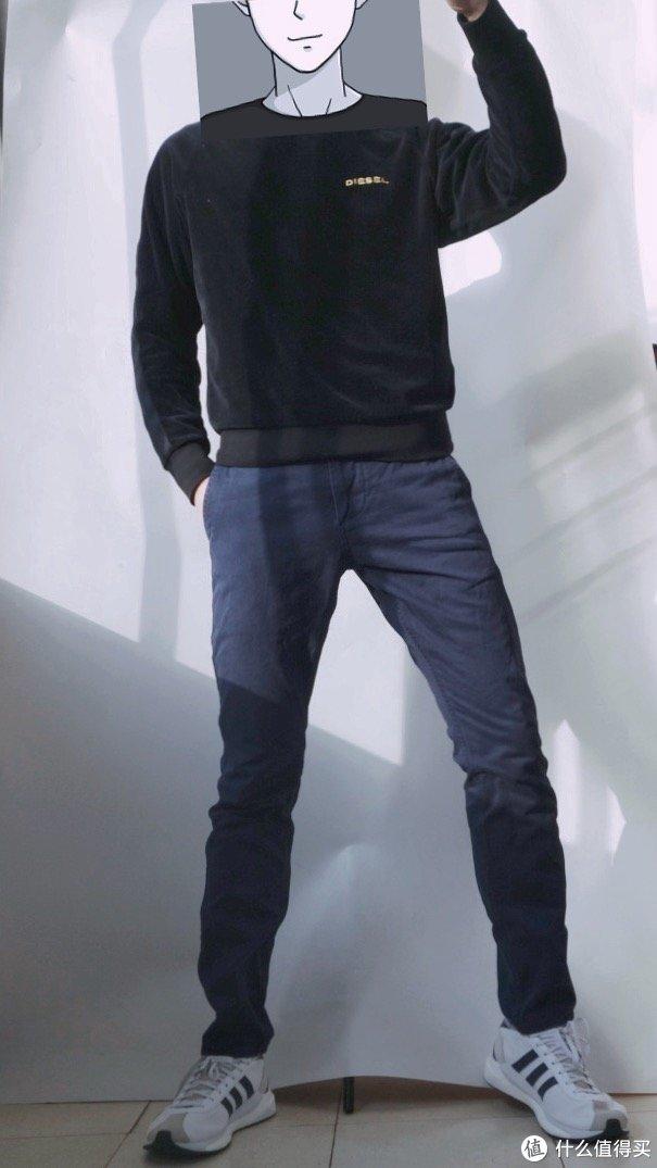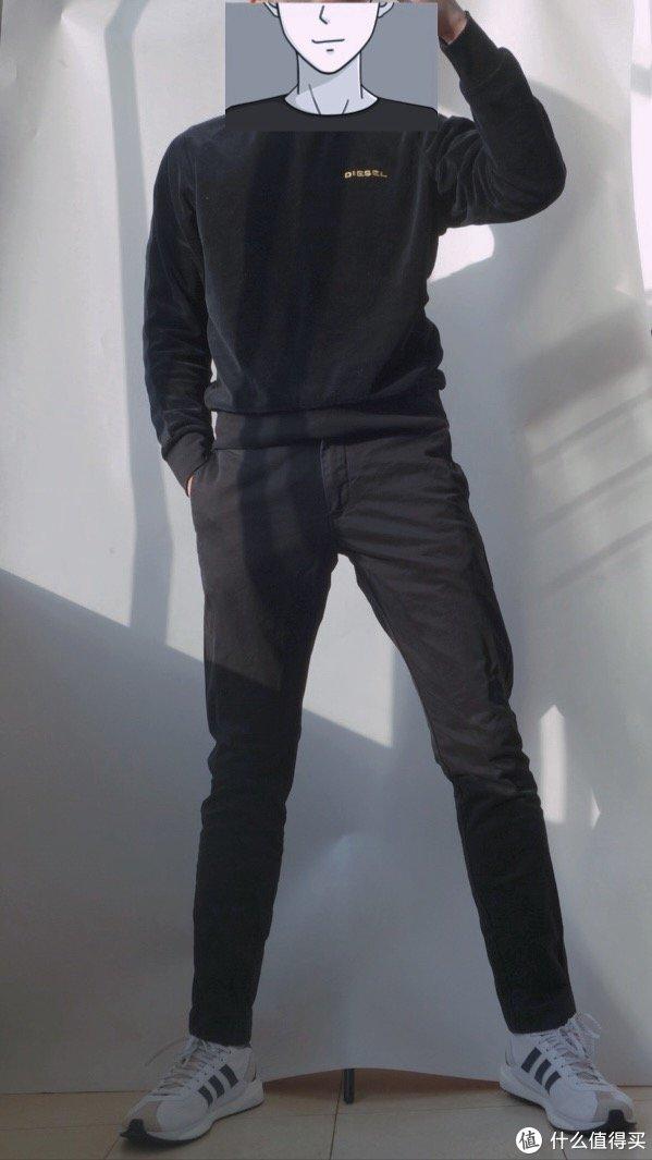 本人身高178cm,体重68kg,腰围2尺4左右。我选的是31 X 32的尺码,穿起来效果如下: