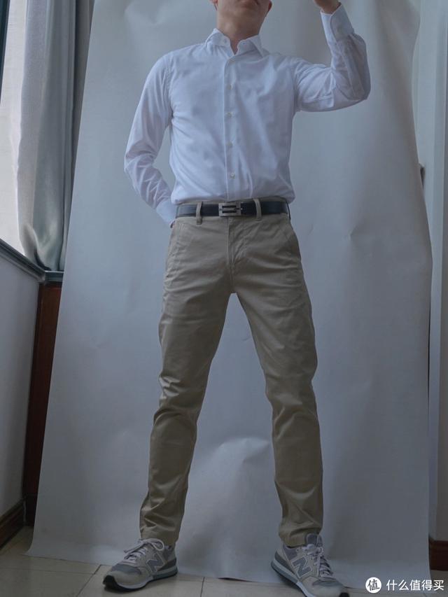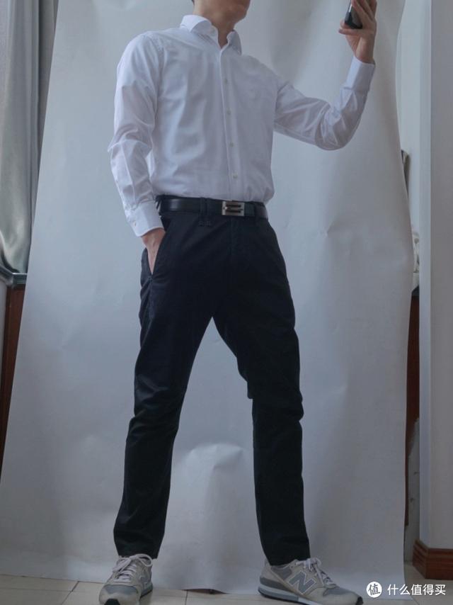 这一次,我选择了黑色。上班最好穿深色裤子配浅色衬衫。尺寸是31 X 30。实际佩戴效果如下: