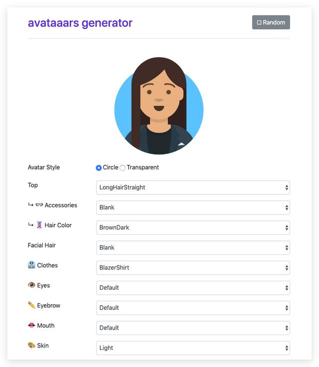 Taaars generator是一款免费的在线头像生成器。任何人都可以轻松创建漂亮的个人头像。其功能简单方便。它可以随机生成头像,也可以通过选择参数手动调整头像的细节。此外,下载格式非常丰富,它支持PNG,SVG,React代码和SVG IMG链接地址。