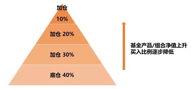 金字塔型加仓法是指初始进场资金量比较大,后市如果大盘处于上升趋势,仓位会逐渐加仓,加仓的比例会越来越小,仓位呈现底部宽,上部窄的形状,就像一个金字塔,更适合整体上升的行情。