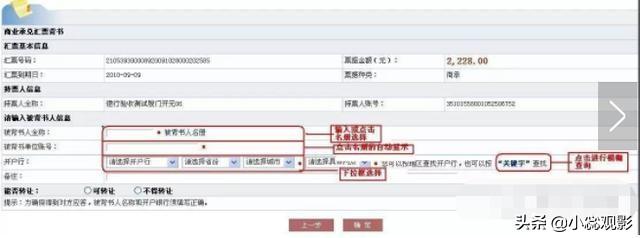 2.输入背书人姓名、账号、银行信息(必填),选择是否背书转让(必填);