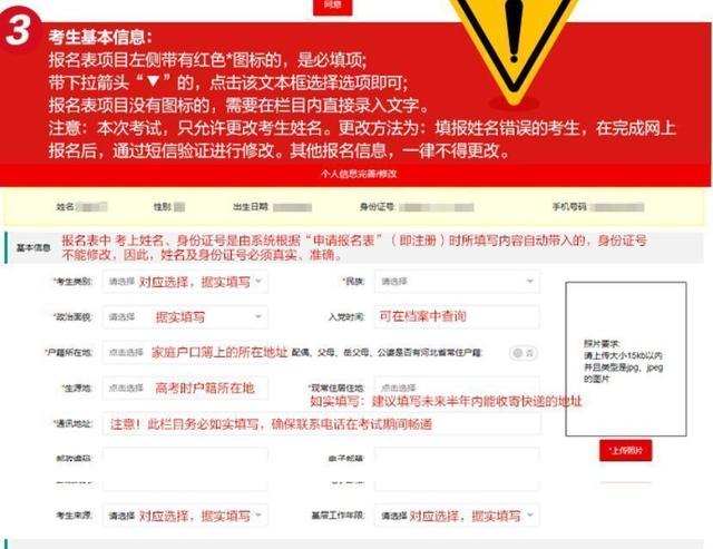 注册账号并登录河北省考试报名系统后,按要求填写个人基本信息:
