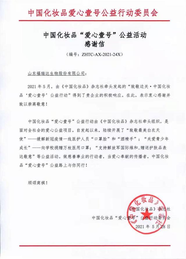 前期经过专家丰富的专业知识和技术经验判断、产品合格性、功效针对性、质量稳定性、运输便利性等多方面论证,福瑞达生物有限公司旗下品牌奇尔博士的相关产品符合“致敬边关·中国化妆品‘爱心一号’公益行动”捐赠产品入库要求,成功入选。
