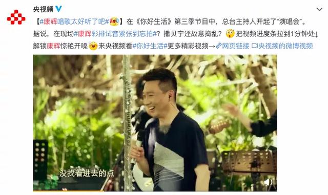 人们对央视主持人的印象是绝对严肃拘谨的代名词,但现实中央视主持人和我们同甘共苦。近日,央视综艺《你好生活》向观众展现了中年主持人的私密状态,王牌主持人康辉甚至用一首歌让观众大吃一惊:康辉唱得真好听!