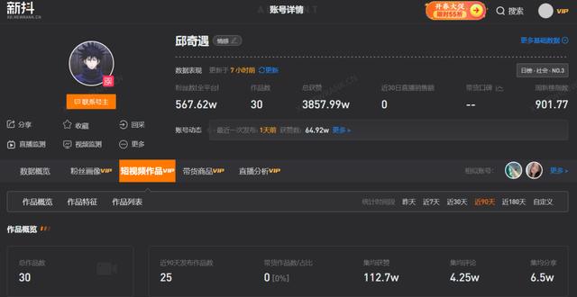 新数据显示,《邱琦余》今年1月上涨近500万,最近三个月发布作品25部,平均赞数超过112万。