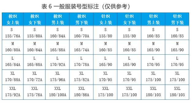 关于5.4系列,男性身高175cm,胸围92cm,女性身高165cm,胸围88cm。男女的尺码设置与GB/T 1335.1和GB/T 1335.2中A型的数据设置基本相同,只是对体型标注有要求。比如男式175/92码。儿童尺寸设置基本符合GB/T 1335.3。