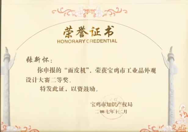 2007年,张新怀带着和面机代表宝鸡市参加首届陕西创业博览会,使和面机走向世界,畅销海外。