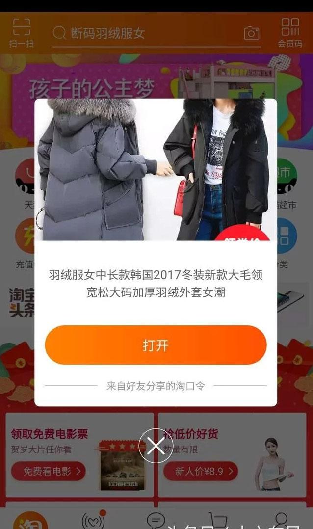 第三步:按住复制机器人回复的消息,返回手机淘宝,出现密码规避,点击打开;