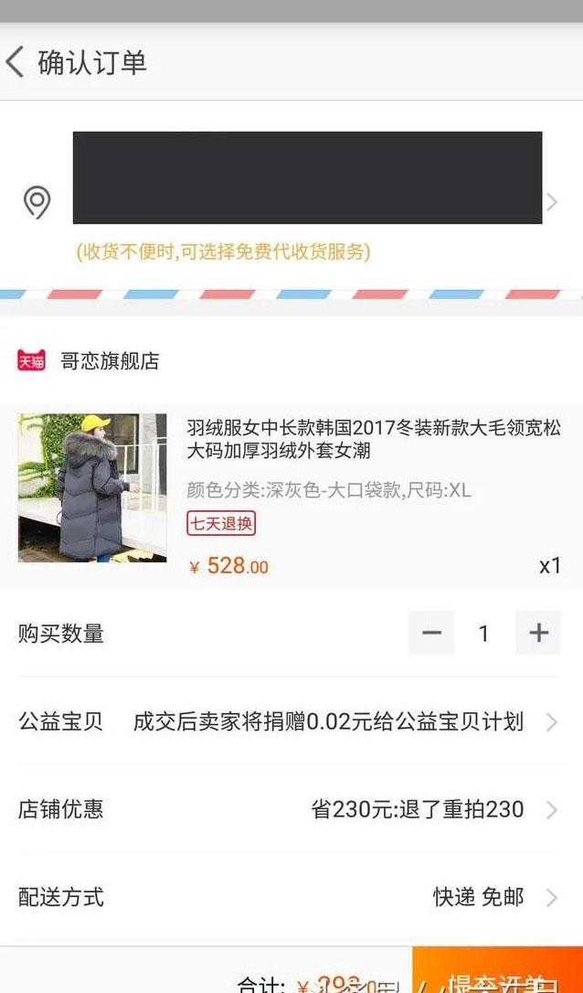 选择好颜色和尺寸后,下单,优惠券可以使用,提交订单,等待收货。