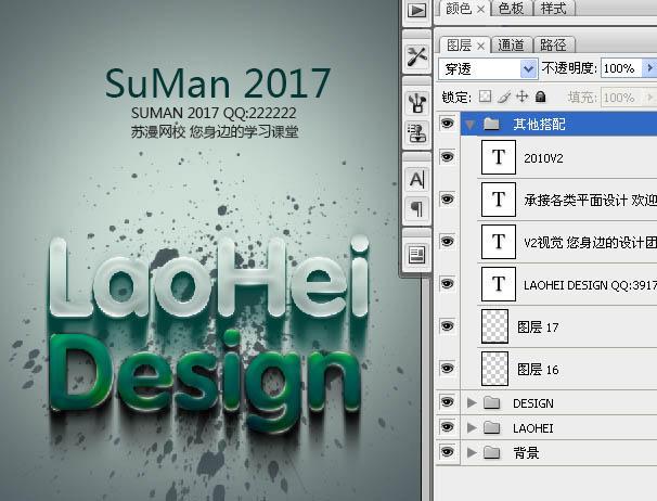 17.接下来,设置深绿色纹理设计字体。方法同上,只是改变了颜色。