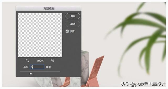 选择“滤镜>模糊>”:半径为5的高斯模糊。