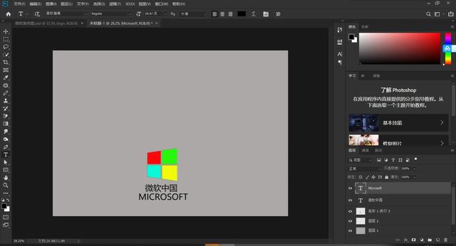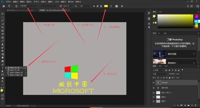 8)按住英文的T键选择一个word工具,键入微软中国和微软: