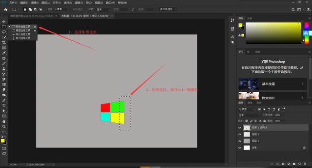7)使用矩形选框工具选择形状的多余部分,按住delet键将其删除:
