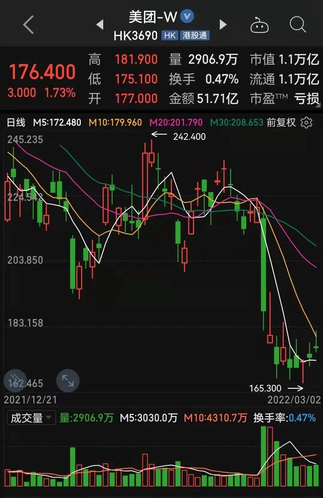 3月2日,美团盘初上涨近5%,收盘上涨1.73%。