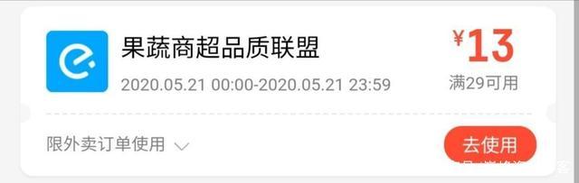 4。果蔬摊贩的超级红包也分普通和优质,一般用在超市、水果店、蔬菜店等。这个红包对于大多数人来说用处不大,但是对于经常在饿了么店买菜的人来说还是很香的。平台经常发12-18个大型果蔬商的超级红包!