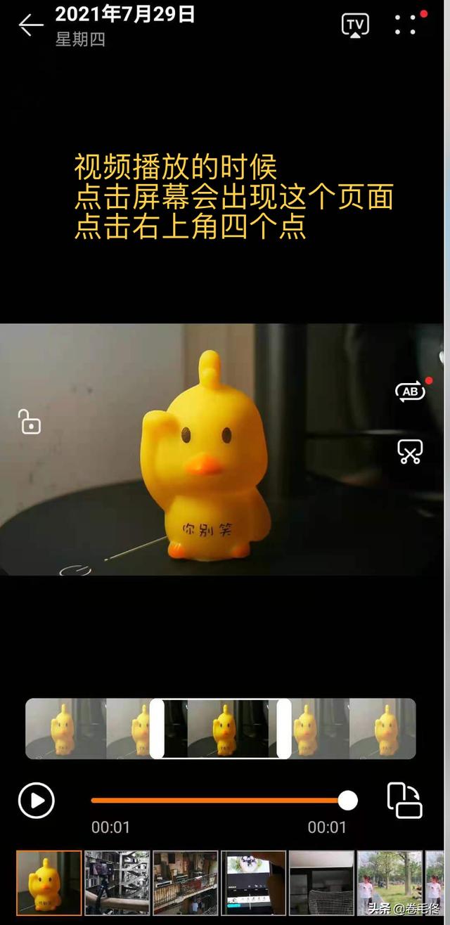 ②视频播放时,点击屏幕。这时右上角会出现四个小点。