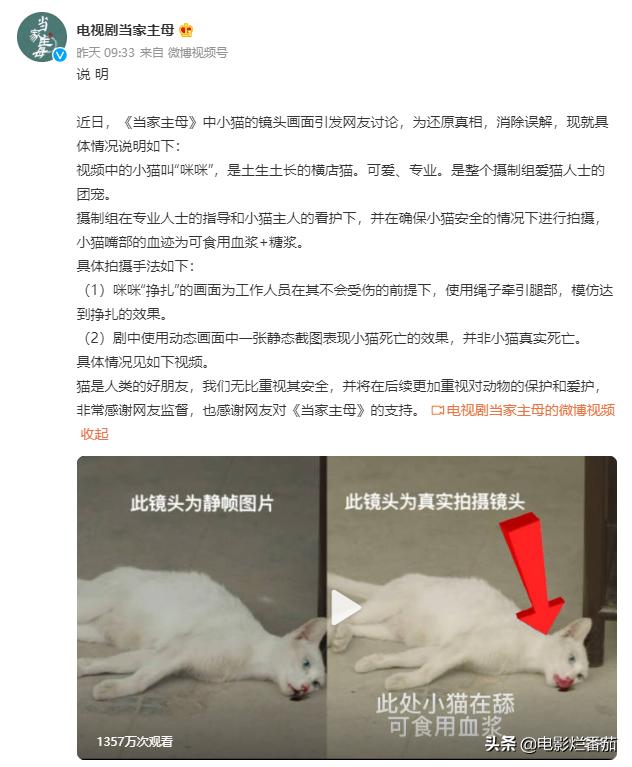 对此,剧组显得很有诚意,不仅说明了拍摄情况,还在拍摄过程中放出花絮,证明小猫没有死。