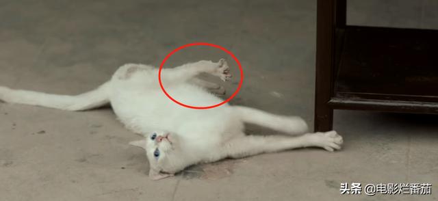 其次,剧组给了小猫挣扎时前腿的牵引线,但不能说明后腿僵硬。