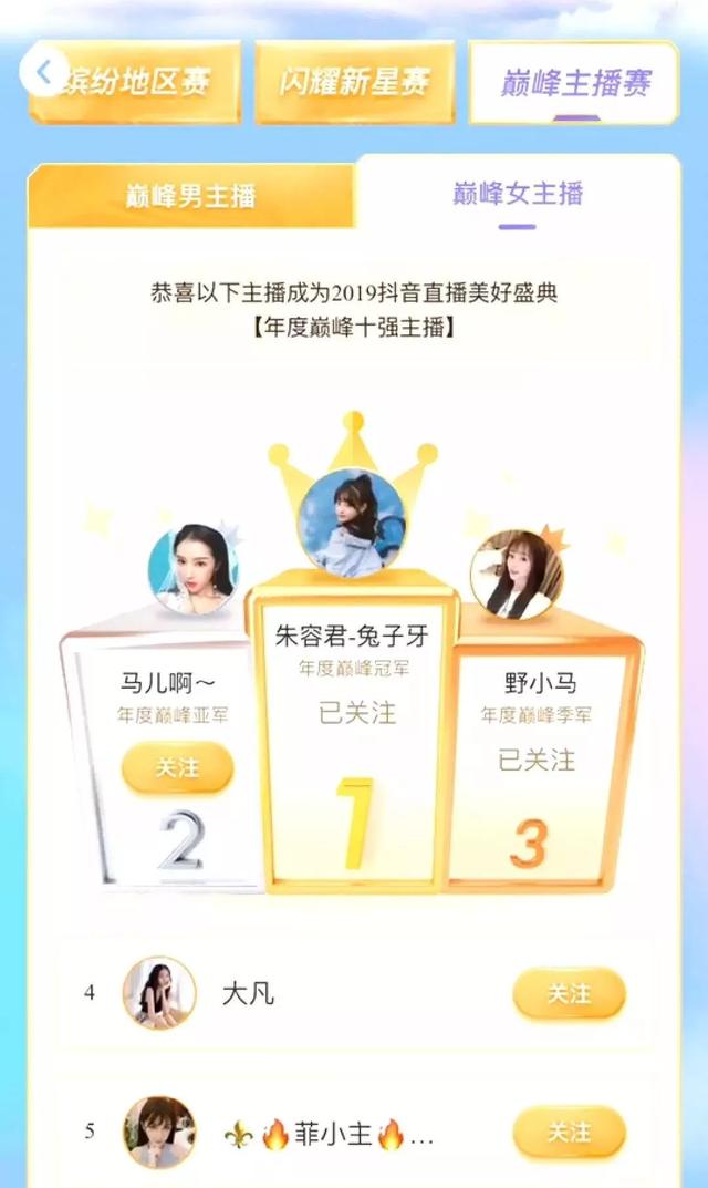 12月12日零点,一年一度的Tik Tok巅峰主播大赛正式结束,年度十佳男女主播诞生。兔牙当选年度十大女主播冠军。