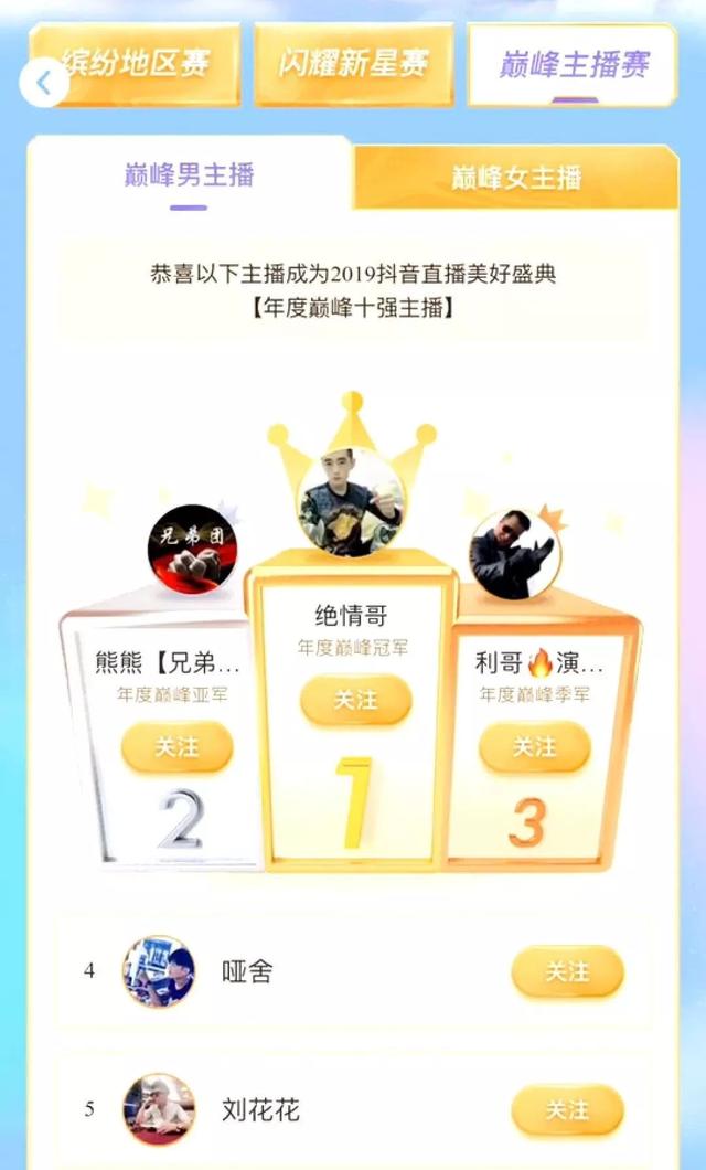 最后一期巅峰主播赛从12月5日开始分男女赛道,Tik Tok所有主播均可参加,最终评选出年度十佳男女主播。
