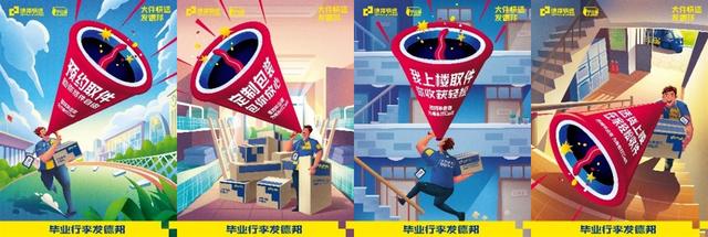 此次,德邦快递特别针对毕业季推出了“德邦毕业送”号召箱,用创意插画风格的大喇叭为毕业生大声号召。此外,德邦快递还在高校推出了德邦毕业贴限量版召唤盒和限量版召唤贴,融入高校代表性文化符号,为纸盒包装增添个性活力,充分唤起毕业生对母校的眷恋。