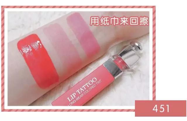 质地类似韩国唇彩,水润润泽。如果涂一秒就锁色,就算用纸巾擦掉表面也会留下底色。成膜后就是