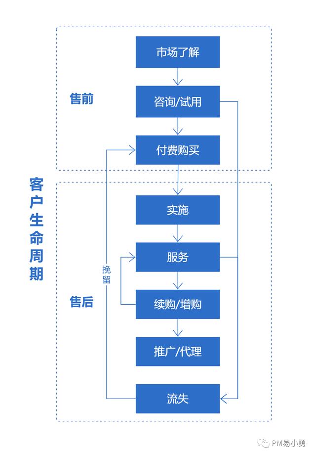 其次,产品经理的日常工作之一就是穿梭于企业各个部门之间,协调资源,解决问题。所以,只有了解客户的生命周期,才能更好地与其他部门合作。