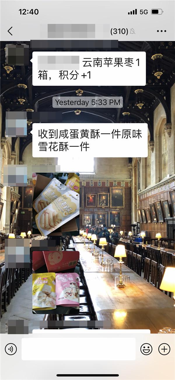 方便是主要优点之一。店主杨光现在有两个微信群。“我现在采取的方式是卖点东西,然后根据需求让客户在群里接力。接力的东西主要是根据接力的次数来传递的。这样就没有囤货的风险,最大程度保证了新鲜度。因为实体店最大的风险就是东西卖不出去然后坏掉,但是我是按照接力单发货的,所以我没有什么库存,卖的东西到货当天就可以取,应该比外面的新鲜,一举两得。”