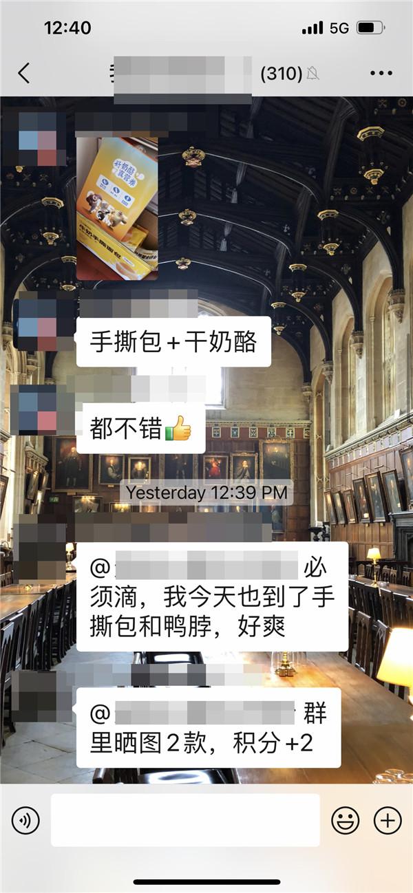 Polo(化名)目前有三个团购群。“一是购买藜麦、脱脂奶等保健品;另一家主要销售血橙、柚子等水果产品,产地复杂,部分是云南当地农民生产的鲜果。文化上也有小众产品,包括扭蛋、盲盒和一些动漫周边。每个群每天都有新的推荐,我会在空闲的时候打开看看。藜麦是最常被购买的。因为最近的健身需求,我更加关注保健品。”