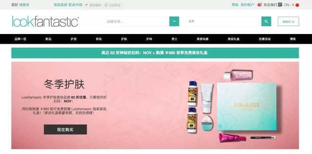 折扣:首次注册的新用户享受八折优惠,购物超过60英镑额外享受九折优惠。