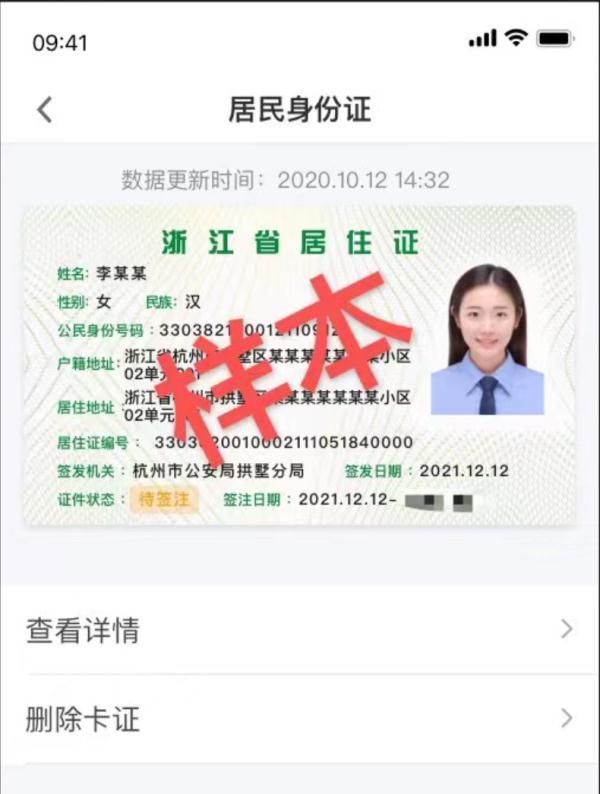 取消发放实体IC卡类浙江居住证。